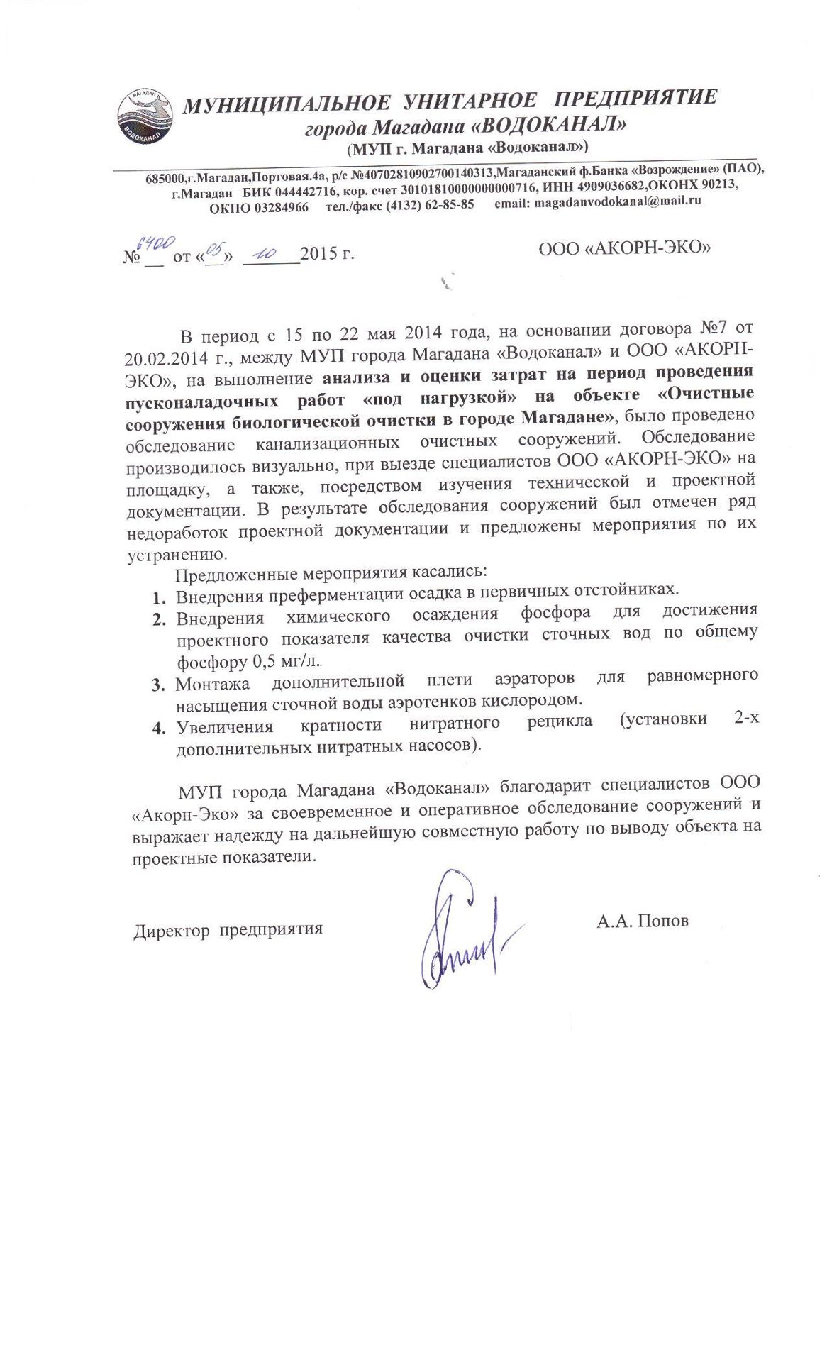 Положительный опыт проектирования, модернизации и наладки порядка 40 очистных сооружений различной производительности