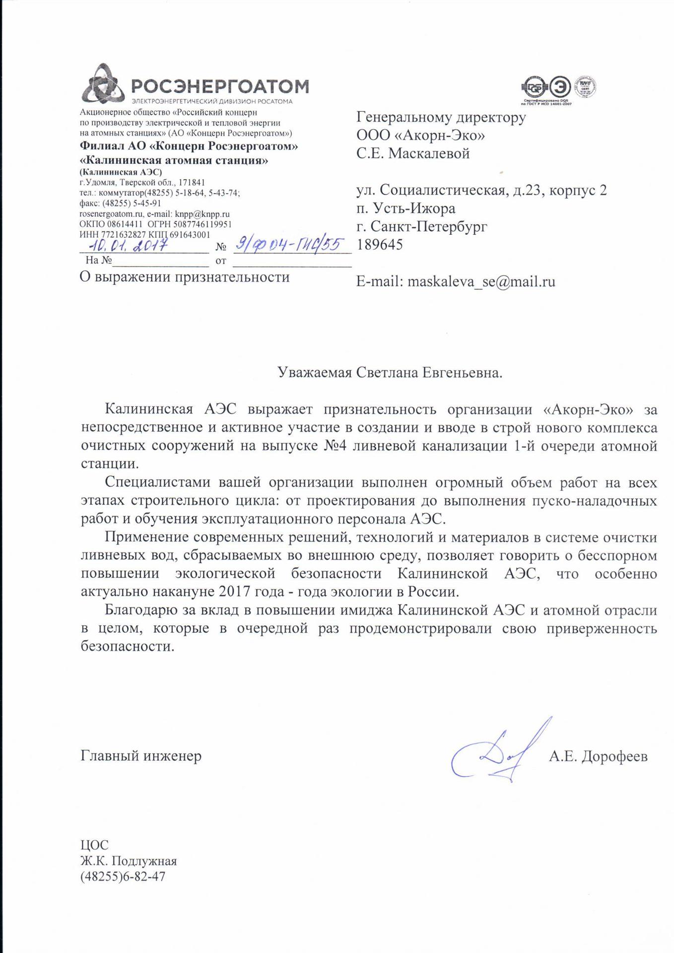 Техническое перевооружение КОС выпуска №4 ливневой канализации I очереди Калининской АЭС. Откорректирована рабочая документация, выполнена разработка и пуско-наладка системы АСУТП с поставкой технологического оборудования, подземных и наземных сооружений, оборудования автоматизированной системы на базе ПТК Siemens
